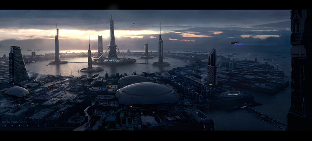 Very cool! I used the central structure as inspiration for my description of a spaceport in an alien city (with credit and a linkback) in my Mass Effect-related fanfic, here: [link] .