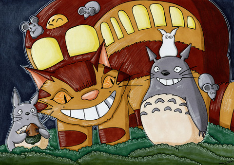 catbus! from my neighbour totoro. picture done for one of my housemates last year. she had it up on her door.Related content