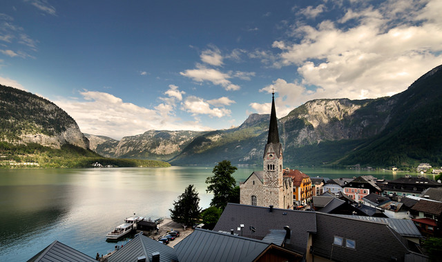 Hallstatt, Lake Hallstatt, Salzkammergut, Upper Austria, Austria, July 2013