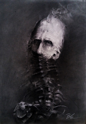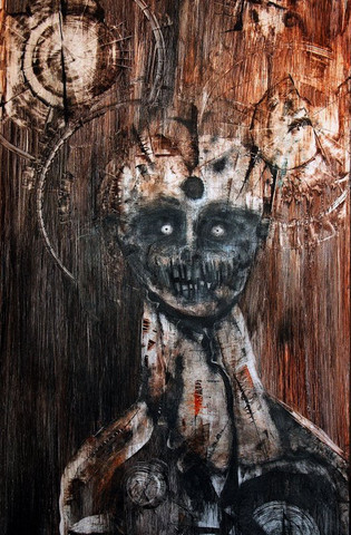 I love that vacancy in his eyes. He's so far gone it doesn't even matter anymore. Great piece.