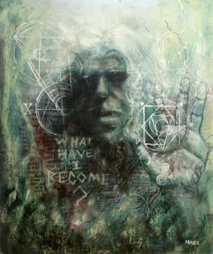 Acrylic and marker on canvas board.Not sure if I'm done with this one.