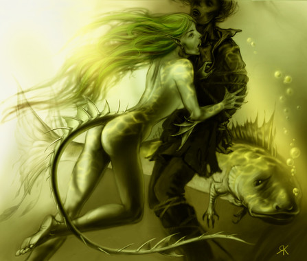 Beautiful! I love this zombie-green colour you choosed for the ghost. ^^ It really gives the mood! Great composition.