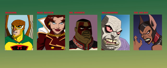 from left to right; Earth 3's Pam: Name and costume suggestions, Mega girl: Costume suggestions, Earth 3's Teekl: Name and costume suggestions, Annataz: costume suggestions, Arataz: costume suggestions, Earth 3's Hugo Strange: Name and costume suggestions.PLEASE POST ANY AND ALL IDEAS!!