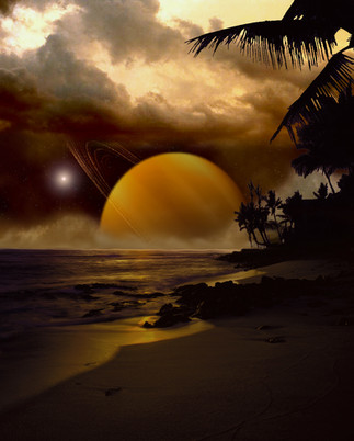 It's suppose to be a blue transparent nebula and behind is a solar system and couple of stars and galaxies.