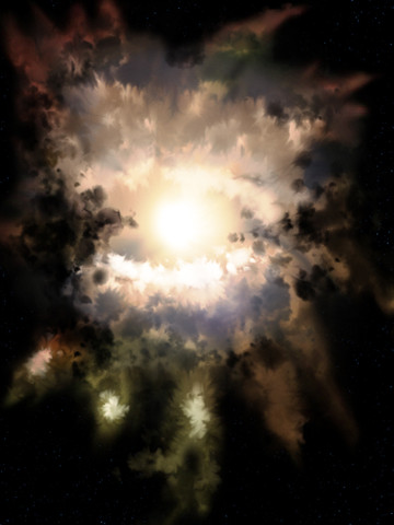 It looks like a rip in the Space-Time continuum, like looking through a rip in a curtain into the room beyond. It would be interesting to see what lies BEHIND the viewpoint. Where are we looking from?