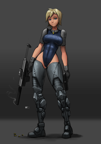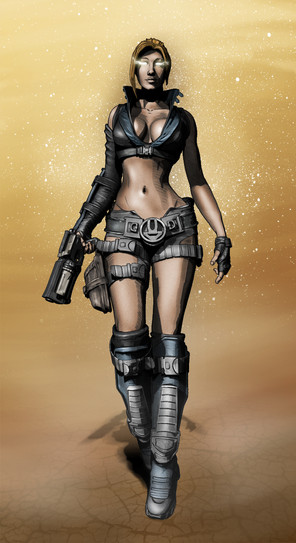 From her appearance, and the design of the gun, she kind of looks like a character from Borderlands.
