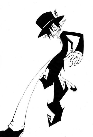 i love the expression, and how you did her really crazy-awesome hair. x] i like the little white outline in the black too - it's a nice touch. great work!