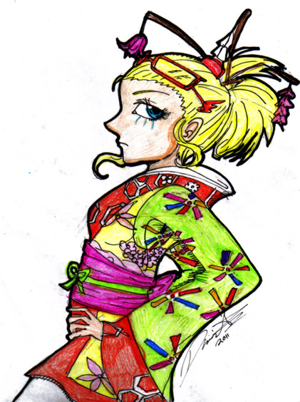 This one was so awesome to do, I looove drawing traditional japanese clothiing and stuff... kimonos, geta, etc... and the parasol with the plum blossoms! XD I've always wanted to try making my own beautiful kanzashi! (the hair ornaments)