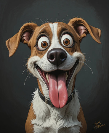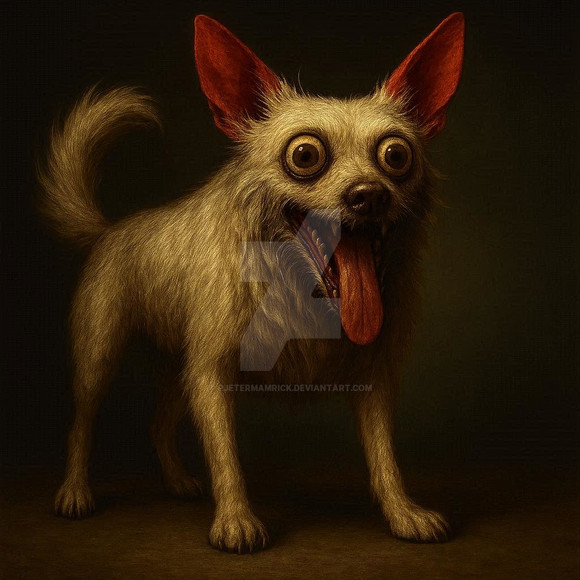 an adorable crazy and goofy looking mutt that reminds me of a dog i used to have!great gallery by the way!reminds me of childrens fantasy books artwork-really cool stuff!