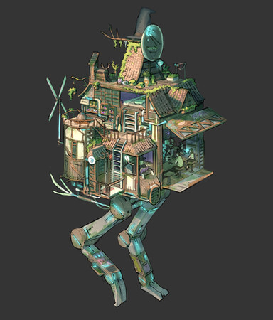 So cool! I didn't noticed the cat at first glance. He sounds kind of terrified, whereas Mister Raven sounds super happy. I love it, nice job! (The howl's Moving Castle version Little Raven's House)