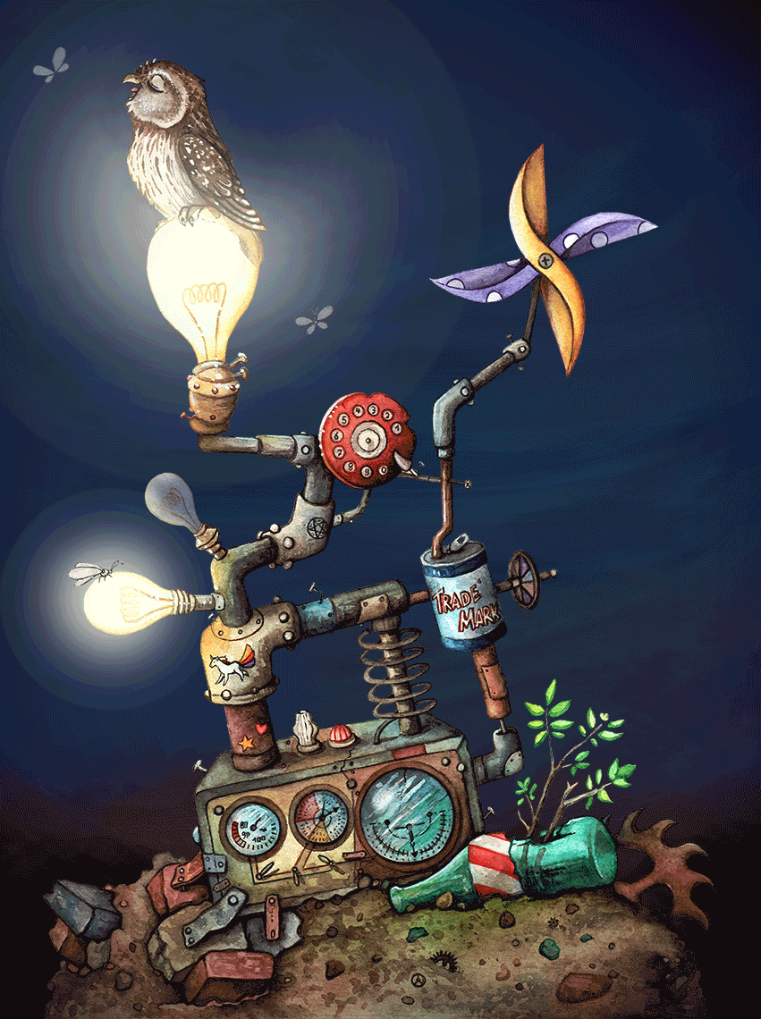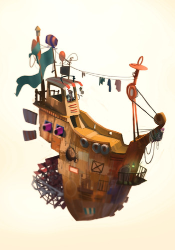So imaginative. I love the cobbled-together look of the ship, the piece is very charming. The animation is wonderful, to boot.