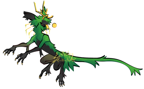 FOOLING, wings (blessed), flora growth (blessed), flora neckfur (blessed), flora tail (blessed), horns (blessed), normal eyes (common), normal ears (common), exclusive bell (exclusive), normal collar (common), raptor feet