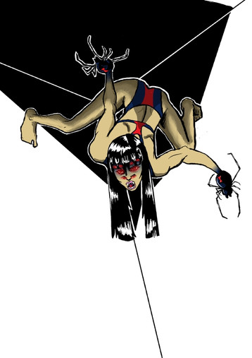Here is OC Inktober entry 2. This if Fool, the the male counterpart to Masquerade. In addition to being her teammate he is also her romantic interest. This character is probably the second most "Mary Sue" character of all the ones that might appear in this project. Fool possesses the Jester's Pouch. He is able to produce any item he can imagine and that can fit through the opening of the bag, a circle about 3' in diameter. The other draw back is that he has to know how the item works, so he can't create a Star Trek style phaser, or a magical sword because he doesn't know how laser guns or magic works, though he could learn and then have access to such devices. None of his creations last more than an hour, vanishing into the ether once their time has run out. It also can store items in an extra-dimensional space that is accessible only to him, allowing him to store and retrieve items he might acquire but who's function he does not understand yet.I actually played this character for a short superhero RPG using the Mutants and Masterminds system. It was pretty fun. He basically functioned like a Green Lantern for the team, but we were Earth based. He basically had a shapable blast attack where he would create an item that filled the spaces I wanted to try and hit and then I would roll for the attack. He could "stunt" to gain other powers. In that game I created bicycles to get around town, and once when we fought a Spider-Man type character I created a grappling gun that shot a yo-yo instead of a hook. It was fun, but the game fell apart after like four sessions.