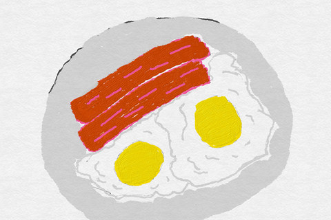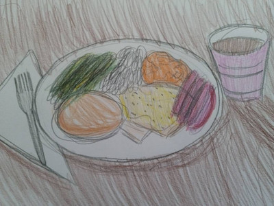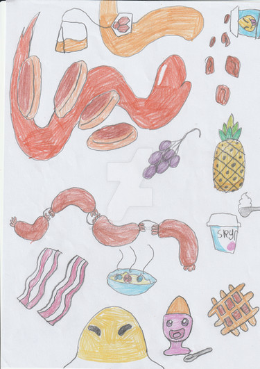 My oldest piece of art⦠a bowl of cereal with a fork and a spoon⦠on a checkered table clothRelated content