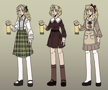 Louise who works and lives at the Inn. her sister was turned into a donkey by a witch. shes a very nervous superstitious girl who overreacts about any small noise or bump in the night. shes very overprotective of her sister-donkey