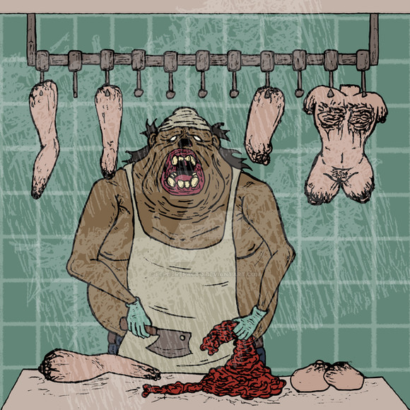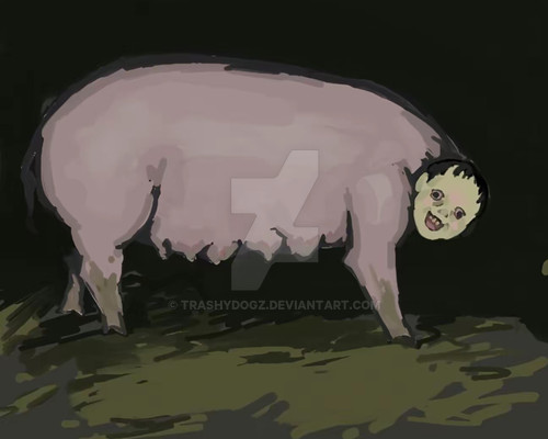 hes not from anything per se it was just like a convo w my bf like "u know whats fucked up? BBQ pig mascots" and then i drew thisΒ
