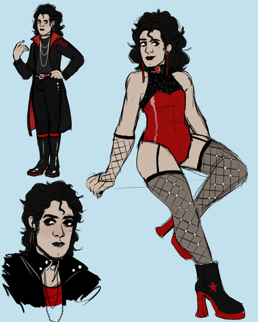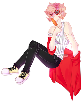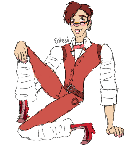 omg im in love with this........ the red blushing on the outer corners of the eyes, the garter straps showing thru the holes in the jeans..... is he single will u tell him to call me.... u r like the master at drawing cute boys jeez