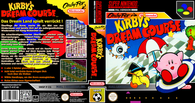 RCC clean cover for Kirby’s Dream Course (SNSP P CG) by Nintendo.Those covers were created via GIMP and are meant to be used with Retro Cartridge Cases (www.startnext.com/rcc ). When the RCC are available, all covers will be released to the public.
