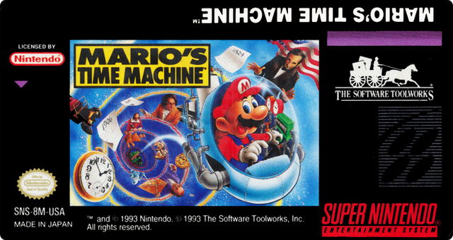RCC base cover for Mario’s Time Machine (SNSP P 8M) by Mindscape Inc..Those covers were created via GIMP and are meant to be used with Retro Cartridge Cases (www.startnext.com/rcc ). When the RCC are available, all covers will be released to the public.