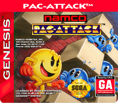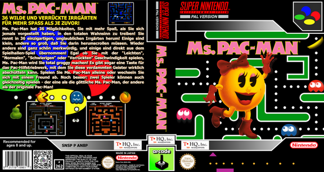 RCC base cover for Pac-Attack (SNSP P P9) by Namco.Those covers were created via GIMP and are meant to be used with Retro Cartridge Cases (www.startnext.com/rcc ). When the RCC are available, all covers will be released to the public.