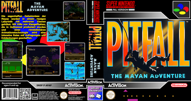 RCC base cover for Pitfall: The Mayan Adventure (SNSP P APAP) by Activision.Those covers were created via GIMP and are meant to be used with Retro Cartridge Cases (www.startnext.com/rcc ). When the RCC are available, all covers will be released to the public.
