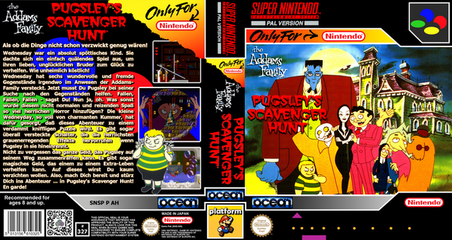 RCC base cover for Pugsley's Scavenger Hunt (SNSP P AH) by Ocean.Those covers were created via GIMP and are meant to be used with Retro Cartridge Cases (www.startnext.com/rcc ). When the RCC are available, all covers will be released to the public.