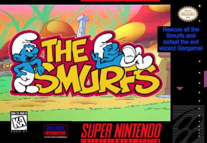 RCC base cover for Schlümpfe, Die (SNSP P 8R) by Infogrames.Those covers were created via GIMP and are meant to be used with Retro Cartridge Cases (www.startnext.com/rcc ). When the RCC are available, all covers will be released to the public.