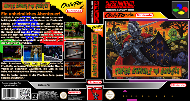 RCC base cover for Super Ghouls ’n Ghosts (SNSP P CM) by Nintendo.Those covers were created via GIMP and are meant to be used with Retro Cartridge Cases (www.startnext.com/rcc ). When the RCC are available, all covers will be released to the public.