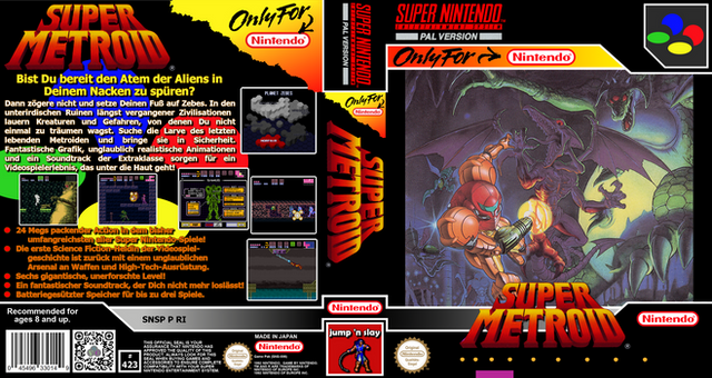 RCC SCS clean cover for Super Metroid (SNSP P RI) by Nintendo.Those covers were created via GIMP and are meant to be used with Retro Cartridge Cases (www.startnext.com/rcc ). When the RCC are available, all covers will be released to the public.
