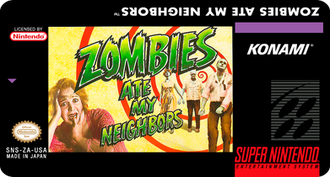 RCC alternative cover for Zombies (SNSP P ZA) by Konami.Those covers were created via GIMP and are meant to be used with Retro Cartridge Cases (www.startnext.com/rcc ). When the RCC are available, all covers will be released to the public.