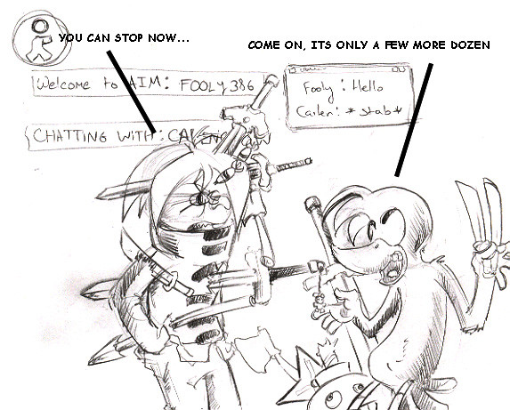 I know, but that's the whole basis pretty much for 90% comics. They all are gathered from conversations I had on AIM, that's why I said this one isn't as good as the others, cause will get this better than anyone. I'll be trying harder in the future though to make sure I get a joke more open to all.