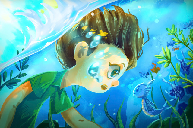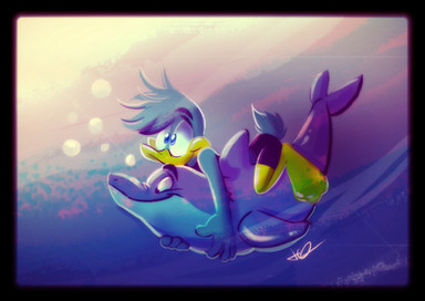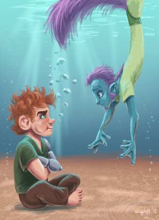 As I said yesterday, absolutely gorgeous work on the water and the sky. : ) I have a hard time making them both distinctive, bit you nailed it. But maybe the water kind of "stops" a bit too sudden in the foreground, almost looks like they're in a giant fish bowl maybe if you had it fade away more it would create the right effect