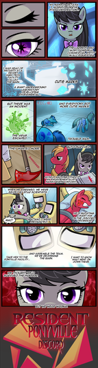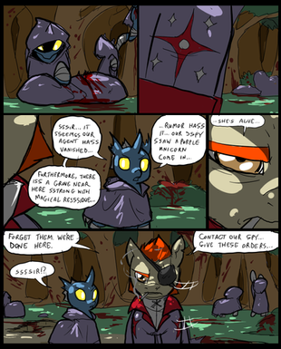 Great art, as always. I bet with enough training, your art would shine, but living is hard enough itself, and art is an hobby, I guess Nice stuff with hardcore Spike as badass mofo, then him stumbling around, on that stone, he, he. I want to see how Octavia is going to shoot from that violin clef bow. With music arrows, whose tips is going to be shaped as music notes?