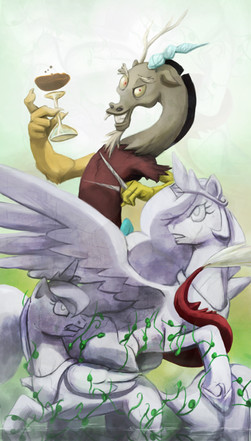 Ahh, Discord~ His mighty godliness of all things chaotic. Such a pure figure of everything defying the boring harmony of the daily grind. Ahh, I just luffs him so much I could hug him for the good he's done to making things fun again! Things get OH so tiring when they're the same boring thing, so a little spice to life never hurts