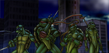 I really dig the intense vibe.. i dont know if its meant to be that way, but the specific detailing of the line work with the red tint that shapes the muscles (intensely) really makes me feel like that turtle is made for one thing and one thing only... to kick some major butt