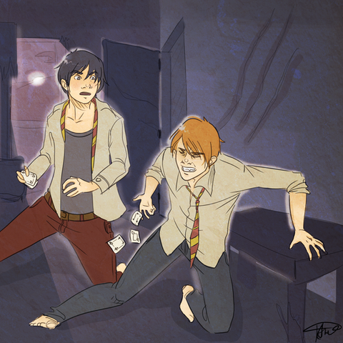 I HATE RON WITH A MILLION PASSIONS OF BURNING SUNS!!!!!!! why is he holding Draco by the wrists?