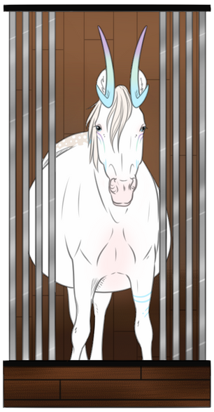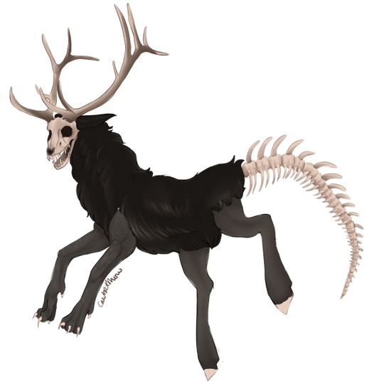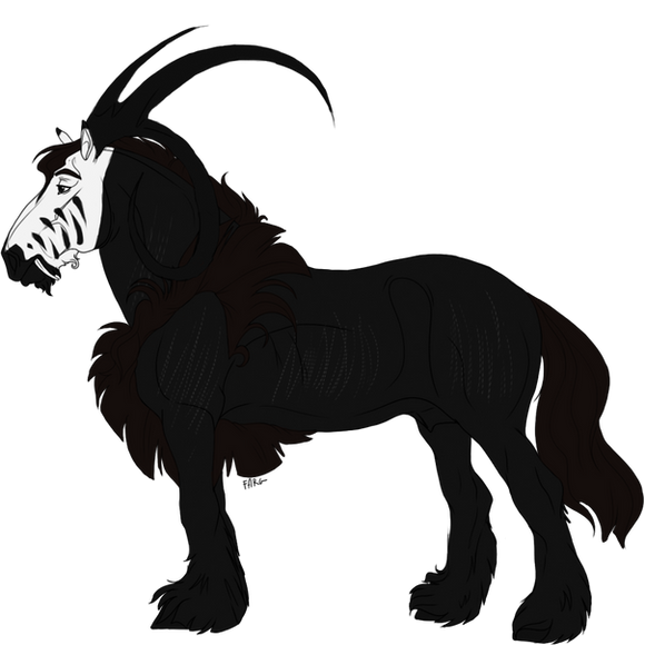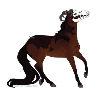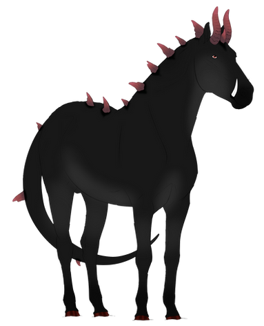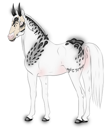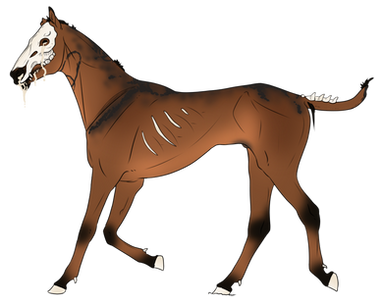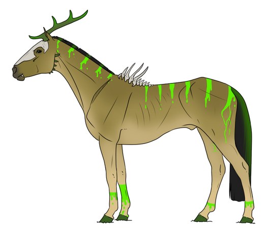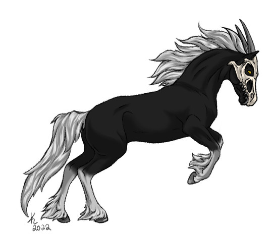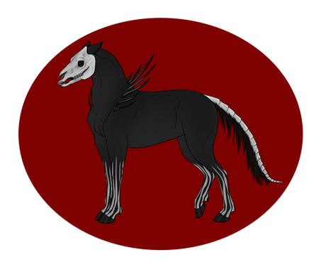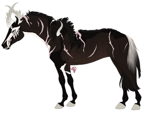 Mutations: Fangs {dom}, Dragon Horns {pass}, Chameleon Eyes {dom}, Crested {Dom}, Fetlocks {Dom}, Skull {dom}