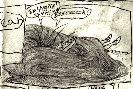 My ink pen died in the middle, and the new one kept making spontaneous blots.