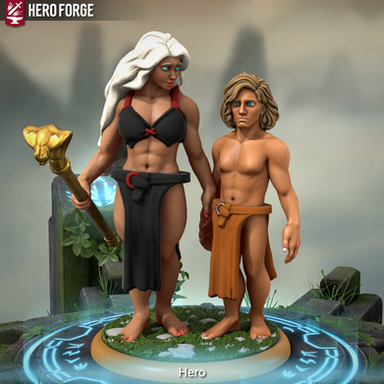 This is Toby with Fanny, his special halfling-lady-friend. They also have fun together.Made with Hero Forge.