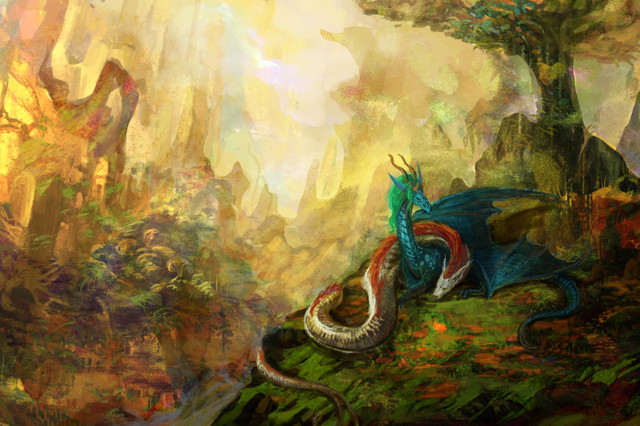 Beautiful! I love the contrast between the two. I'm just wondering why Temeraire's wing is yellow......