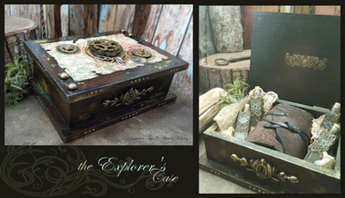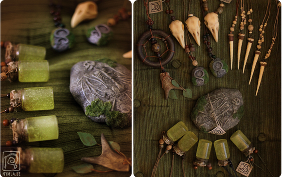 I hand stitched together, and hand painted the leaves on the leather pouch for the bottle.
