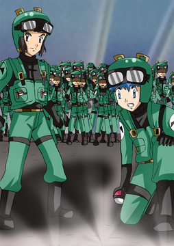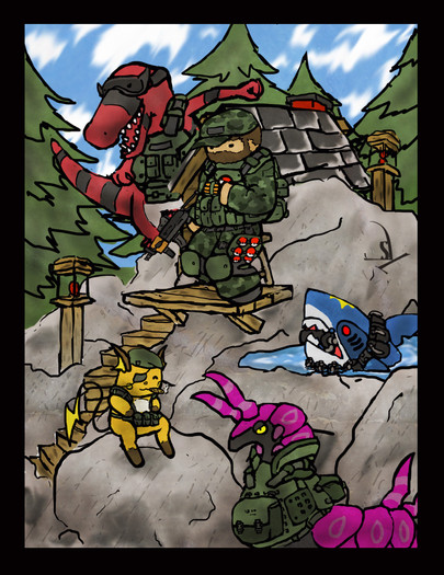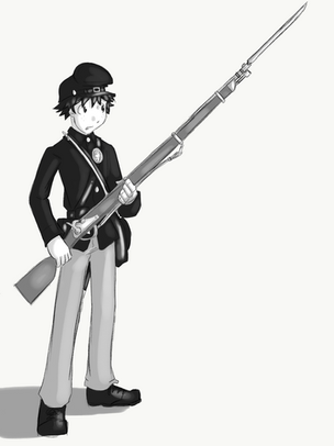 Wasn't going to draw a gun/rifle at first since that's not exactly kids friendly or anything... But the only other thing I could've drawn was a fishing rod, which is pretty lame. So he gets a rifle after all, he'll need one in the army, probably.