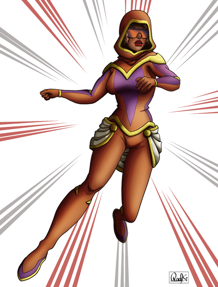 I like how you used the white outline to separate her cape from the black area behind her -- really well done!