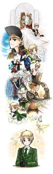 Of all of them, I think I like Ludwig, Yao, and Veneziano the most -- I mean, Ludwig, showing the suffering of the German people and the rise of Hitler for the time...Yao, showing the sheer agony of ideals and yet another giant clash in the land, with even more change than before...Veneziano...I mean, the flag of the Kingdom of Italy in the back; but the way he holds himself, grave and shadowed and small, it just speaks so much...