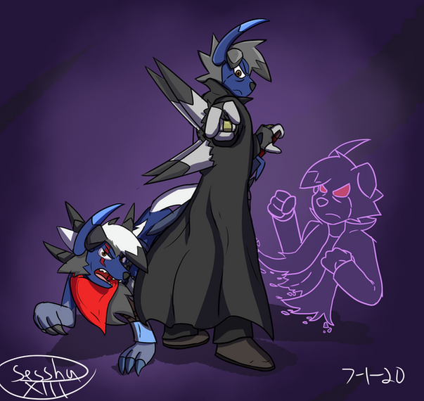 #absol #anthro #coat #ghost #gun #holster #hybrid #nintendo #pants #pokemon #shirt #specter #sword #giratina #lycanroc #lycansol #forgemasterwolf