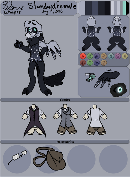 Others: Smol ears, Bird beak, Colored sclera, Raptor feet, Hybrid arm wings, Feather tail tip, Needle tail,