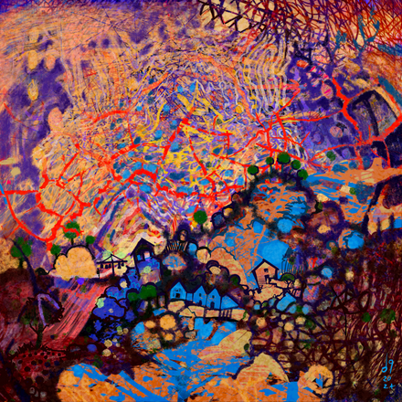Eigentlich wollte ich auch über den Charakter links oben eine dünne, gelbliche Schicht legen, sodass es so aussieht, als ob er tatsächlich eingeschlossen wäre, aber irgendwie ist das nix geworden