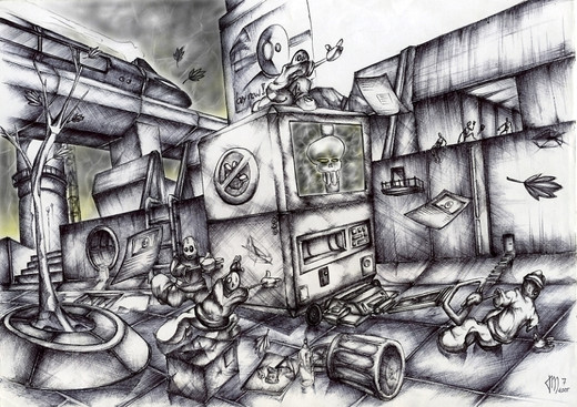 Therefore, ballpoint-pens are a better alternative for me. But you should always bear in mind, that those effects you accidently create with microns sometimes make the picture look more artistic. Concerning this point, some ballpoint pen-drawings may look a bit sterile and lack a certain amount of variety in lining. To compensate that, you have to put a lot of effort in the development of your specific style... Unfortunately there's always a negative site of a certain medium...