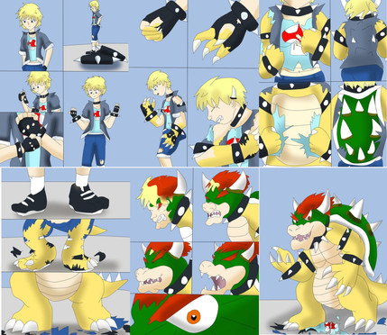 Dianna was just playing her favourite game which was the original digimon game. Then she noticed a add for a chance to be a Greymon for a day. She decided to accept it then she noticed her head disappeared. Then pixels started to form her new head and it was orange with a brown skull. Her nose moved out with sharp teeth and there where a horn on the sides and front. Also her eyes turned red and moved to the sides and three blue lines under her mouth. Now she looked into the mirror and realised she was becoming Greymon and was happy.