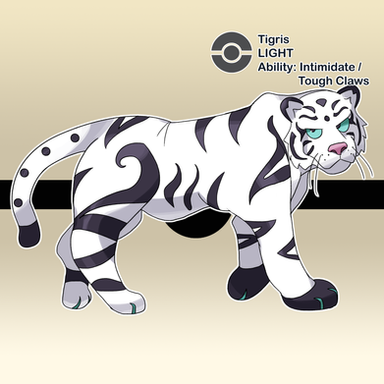 I understand the steel type but not so much the earth type. He looks like a Siberian tiger and he’s kind of bluish-white, so I think Steel and Ice would be more fitting. Just my thoughts. Amazing art!